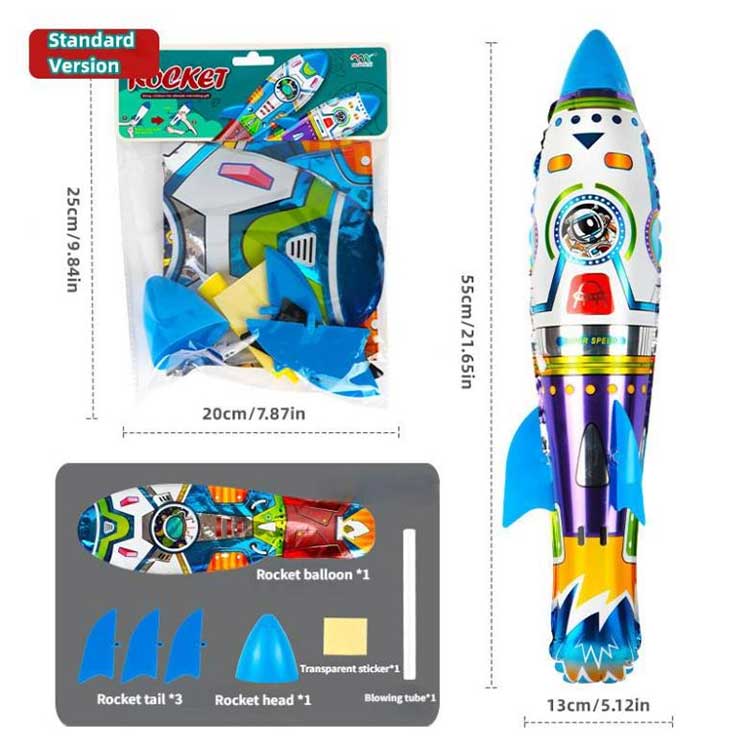 Balon foil roket 3D yang dapat ditiup juga sangat fleksibel dalam hal permainan; tidak memerlukan listrik, cukup buang dengan tangan untuk tenaga penerbangan. Untuk membuat roket terbang jauh, itu semua tergantung pada seberapa tinggi Anda memegangnya dan seberapa besar gaya yang Anda gunakan saat melemparkannya, semakin besar gaya dan semakin tinggi Anda memegangnya, maka akan semakin jauh terbangnya.