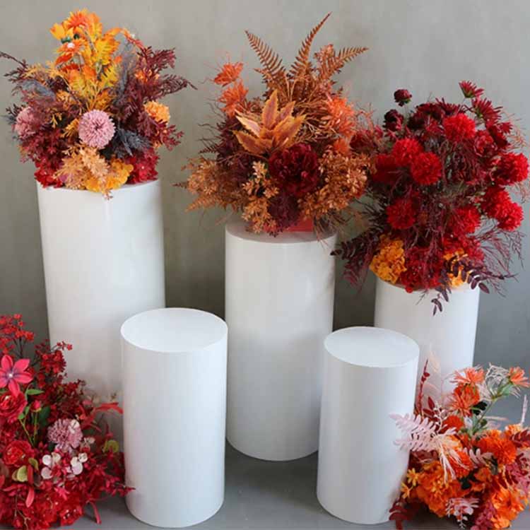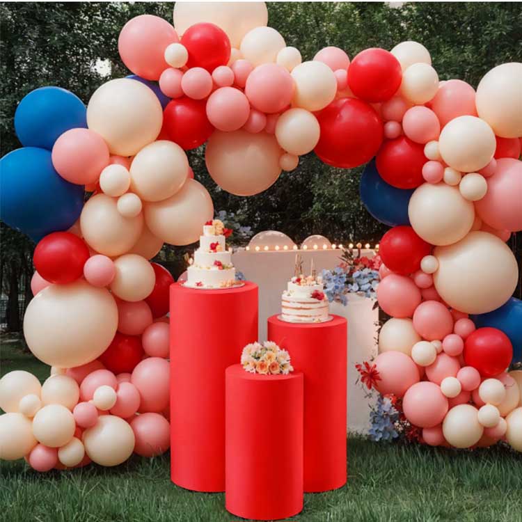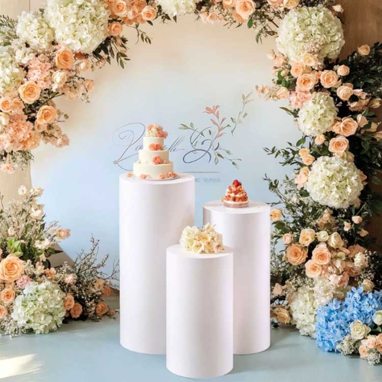 Meja pencuci mulut berbentuk silinder dengan permukaan halus dan rata di sekeliling tepinya. Memiliki alas yang besar, pusat gravitasi yang stabil, dan tidak mudah terbalik. Ini tahan korosi, tahan oksidasi, berstruktur baik, dan memiliki kapasitas menahan beban yang kuat. Tersedia dalam berbagai warna, termasuk putih gading, emas sampanye, dan hitam vintage.