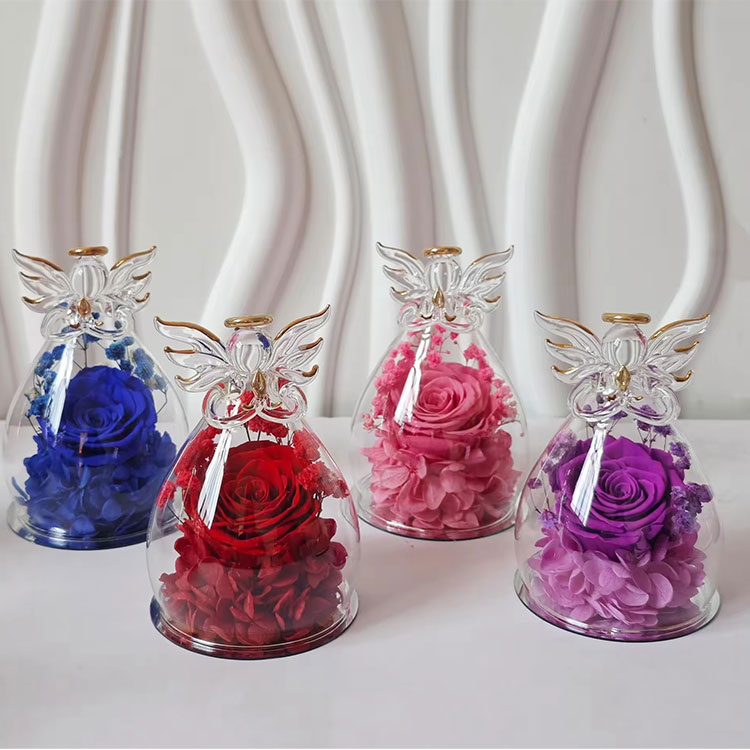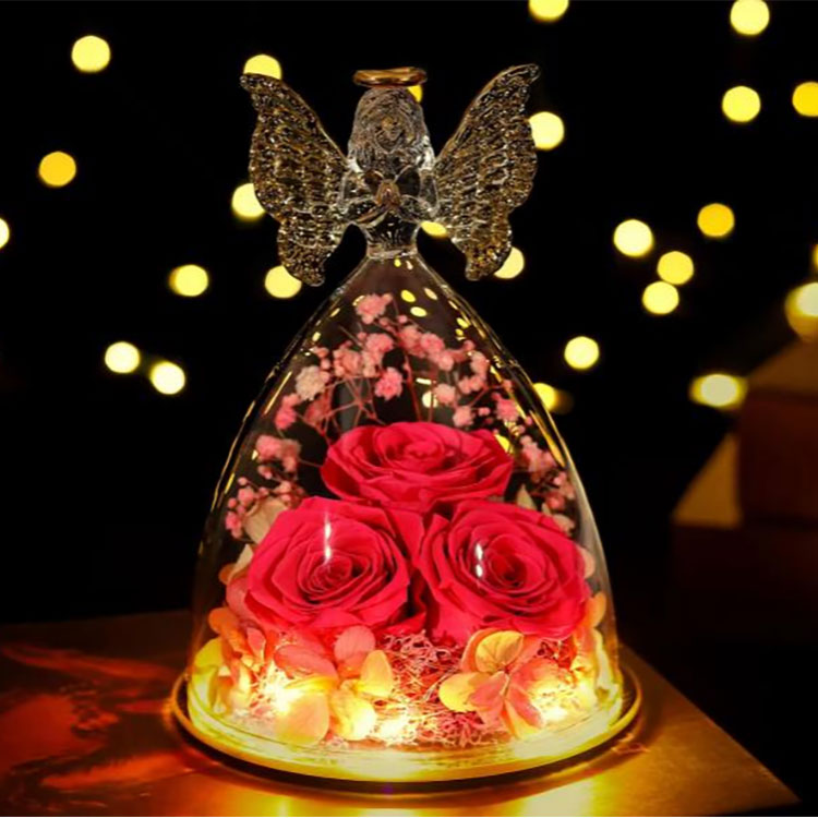 Hadiah bunga pengawet malaikat kaca kami mendukung OEM & ODM.