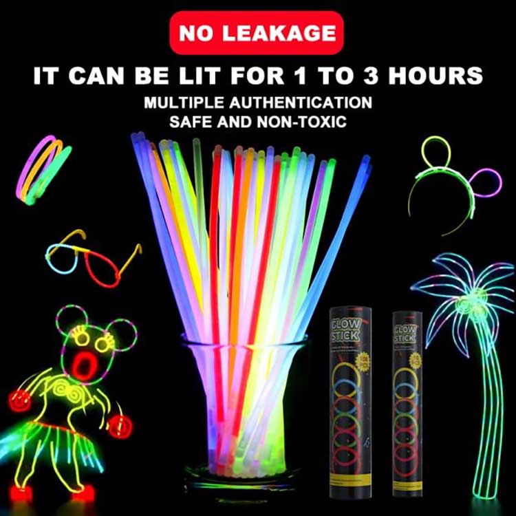 Glow stickt telah ditingkatkan menjadi warna yang lebih cerah dan menarik perhatian. Itu bisa tetap menyala selama 1 hingga 3 jam. Bahan fluoresen yang digunakan pada tongkat fluoresen memiliki konsentrasi yang tinggi sehingga menghasilkan pendar yang tahan lama dan berintensitas tinggi.