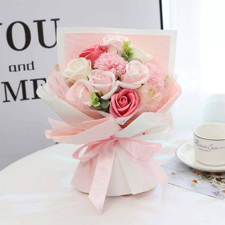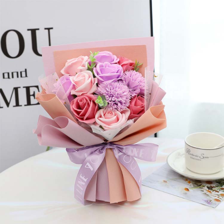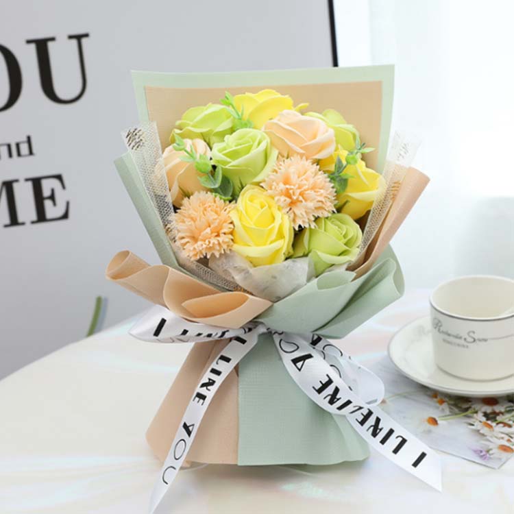 Buket bunga sabun berisi 11 bunga warna warni dan dihiasi pita. Kesempatan yang cocok meliputi: Pengakuan dosa, ucapan terima kasihe, pemberian hadiah, perayaan musiman, komunikasi bisnis, penghargaan dan peringatan, keuntungan perusahaan, dll.