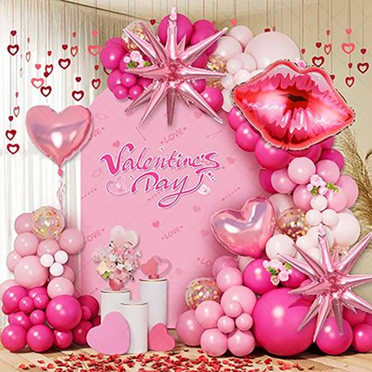 Kontrol Kualitas yang Ketat: Setiap balon menjalani pemeriksaan produksi yang ketat untuk memastikan ketebalan yang seragam (mencegah pecah), kinerja inflasi yang konsisten, dan permukaan yang halus dan mengkilap. Kami dengan cermat memilih bahan untuk rangkaian karangan bunga balon Hari Valentine kami, memilih bahan yang tahan lama dan ramah lingkungan untuk memastikan karangan bunga balon tetap mengembang untuk waktu yang lama.